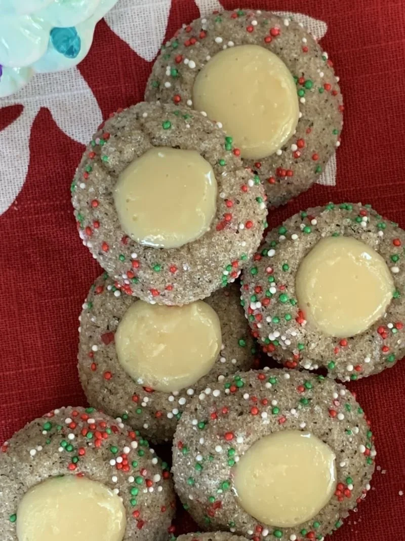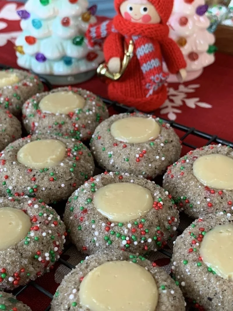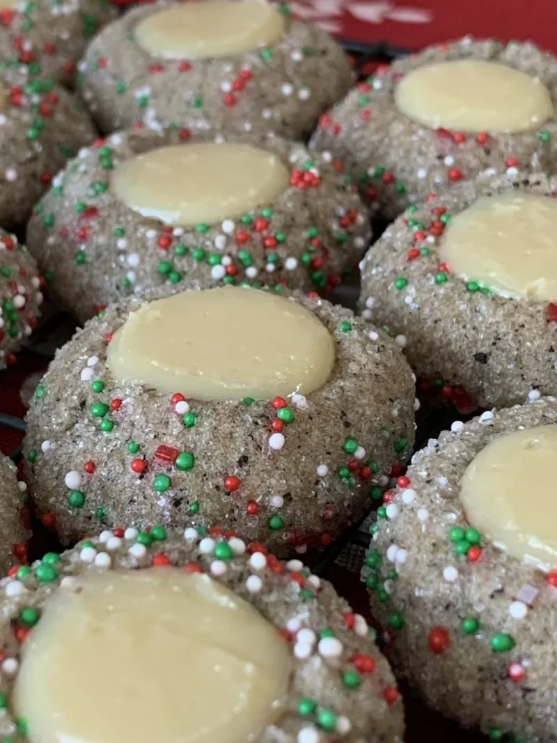 As you know, Christmas cookie baking is practically an Olympic sport in my family. We bake dozens and dozens of cookies every year. We always bake more than we could possibly eat, but we don’t mind. We love trying new ones and of course, making our old standards. A few years back, I made these coffee and milk jam thumbprints from Food Network. And while they’re a bit of work (mainly for the filling), I thought they were so different and special. So when I was researching cookies to make for this year, I came across this recipe in my files and was inspired to change them up and make them even more unique. Enter the Eggnog Latte Cookie.